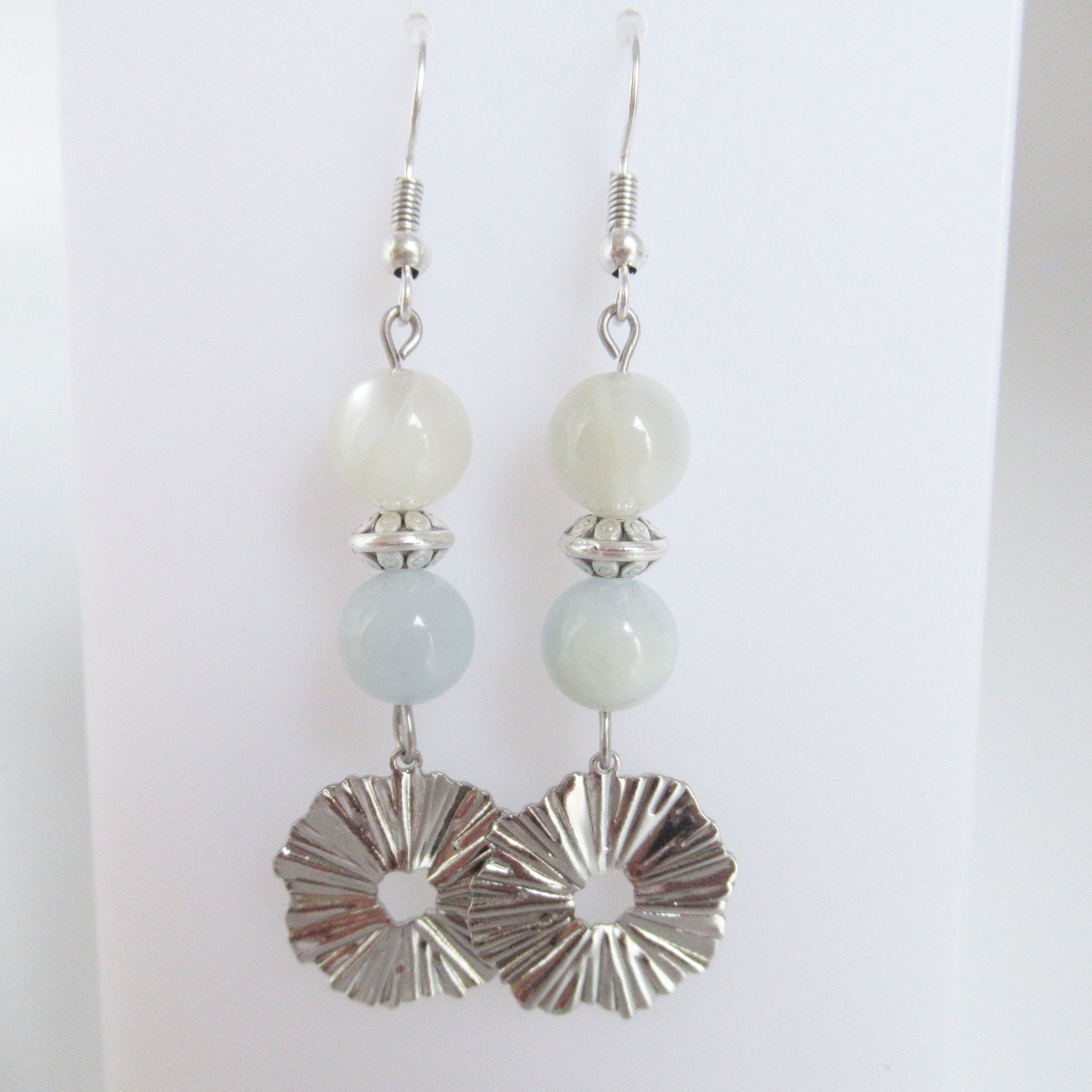 Boucles d'oreilles - Aigue marine - Pierre de lune - Rond ciselé