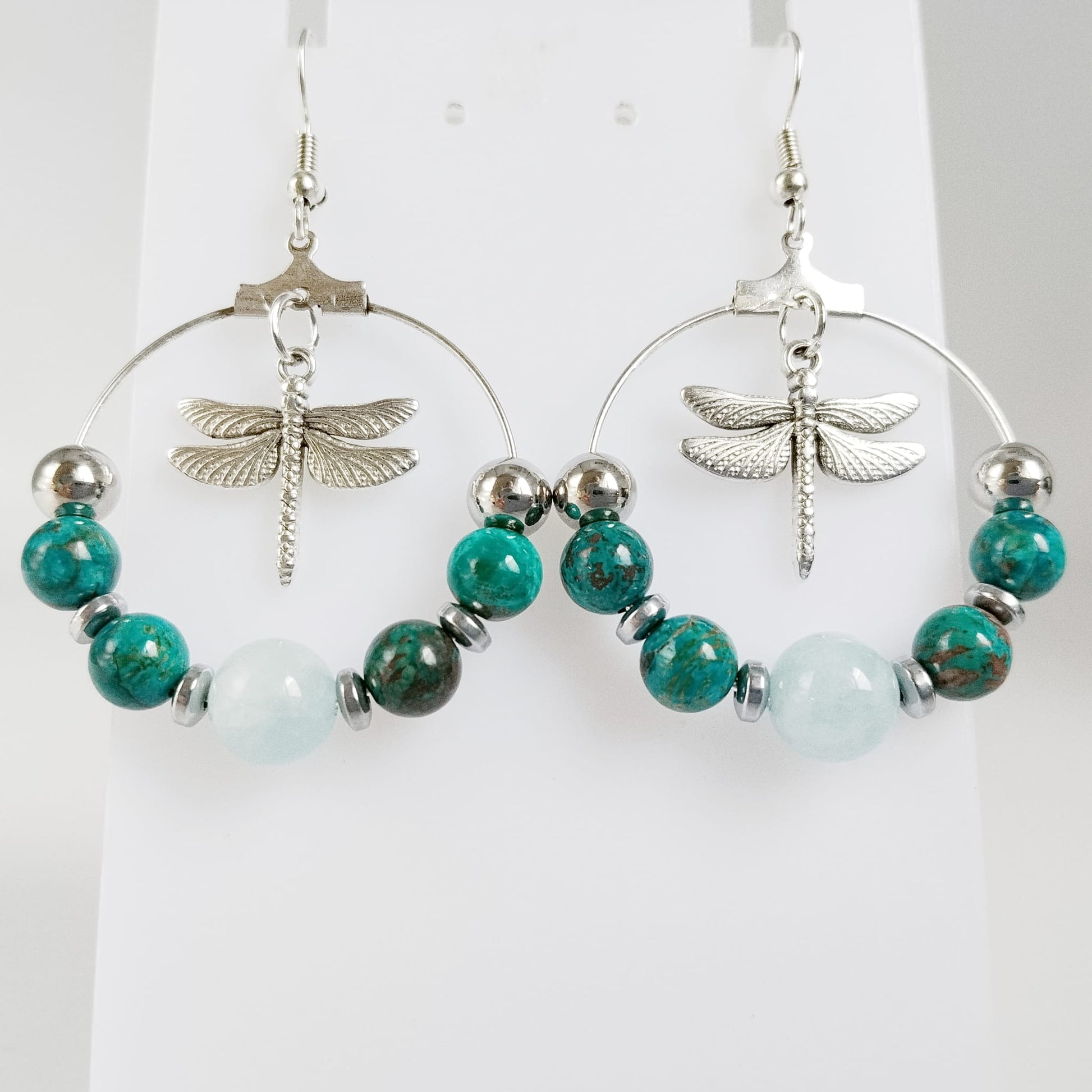 Boucles d'oreilles en pierres naturelles - Chrysocolle et Aigue Marine - Libellule