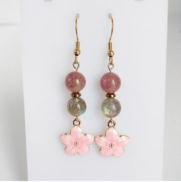 Boucles d'oreilles en pierres naturelles - Labradorite AAA - Quartz Fraise