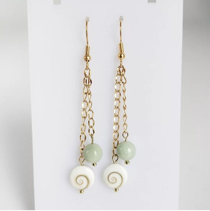 Ajoutez une touche de charme et de protection à votre quotidien avec nos boucles d'oreilles en Oeil de Sainte Lucie et Jade de Birmanie.
